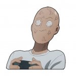 Персонаж стикеров - Сайтама, главный герой пародийного "супергеройского" аниме "One punch man".