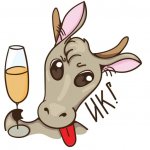 Праздничные новогодние стикеры с символом года быка, скачай себе и поздравь близких веселой картинкой.