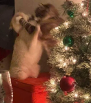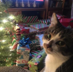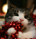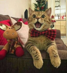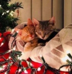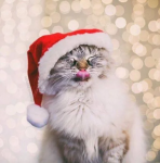 Каждая фотография передаёт особое праздничное настроение: котики играют с ёлочными игрушками, уютно устраиваются в подарочных коробках, позируют среди мишуры и гирлянд, а некоторые даже пытаются стащить праздничное угощение. Живые, искренние и по-настоящему тёплые кадры помогут создать новогоднее настроение в любой беседе.