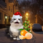 Забавные моменты из кошачьей жизни запечатлены на фоне мерцающих гирлянд, наряженных ёлок и праздничных украшений. Милые мордочки выражают всю гамму эмоций: от искреннего удивления до царственного недовольства новогодним костюмом.
