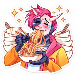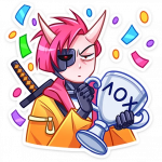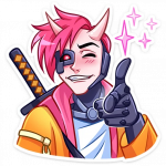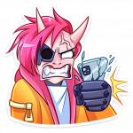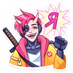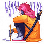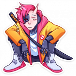 В каждом стикере чувствуется особая энергетика - то он озорно подмигивает, то драматично переживает, то радостно смеётся. А его фирменная оранжевая куртка и катана создают такой классный контраст с современным стилем персонажа.