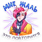 Художник отлично поймал эту грань между серьёзным воином и эмоциональным парнем, который может и подурачиться, и погрустить. Русские надписи на стикерах придают им какой-то особый шарм и делают Рюдзи будто более близким, своим. А яркие цвета и аниме-стиль рисовки просто заряжают позитивом!