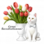 Красочные стикеры "С 8 марта" с изображениями белых котов, плюшевого мишки и весенних цветов. Наполнены тюльпанами, сиренью и праздничными композициями в ярких оттенках. Русские поздравительные надписи идеально подходят для выражения теплых чувств и комплиментов женщинам в Международный женский день. Позволяют отправить утреннее приветствие, благодарность или праздничное поздравление близким женщинам, коллегам и подругам.