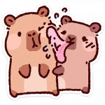 Капипарочка — милые влюблённые капибары, чьё название намекает на неразлучную парочку этих очаровательных грызунов. Два пушистых сердечка проживают все радости отношений: нежные объятия, ревность, примирения после ссор и совместные чаепития.