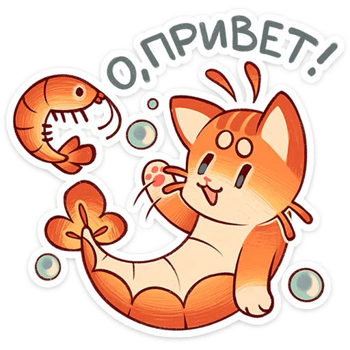 Этот очаровательный гибрид котика и креветки покорит твоё сердце своей милотой и позитивом. Криль обожает воду и чувствует себя в ней как дома, ведь он настоящий морской житель с кошачьей душой! В наборе ты найдёшь стикеры на все случаи жизни: от радостных эмоций до уютных моментов с чашечкой чая.