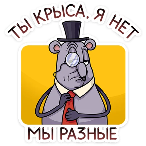 Элегантный грызун в цилиндре и с тросточкой готов покорить ваши чаты! Мистер Крыс - настоящий джентльмен с безупречными манерами, который умеет и философствовать с чашкой чая, и устроить драматичную сцену. Этот обаятельный персонаж поможет вам поддержать беседу, пожаловаться на жизнь или просто добавить изысканности в переписку. Стикеры с русскоязычными подписями идеально впишутся в любой диалог и подарят собеседникам улыбку.