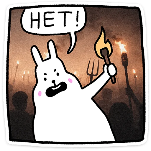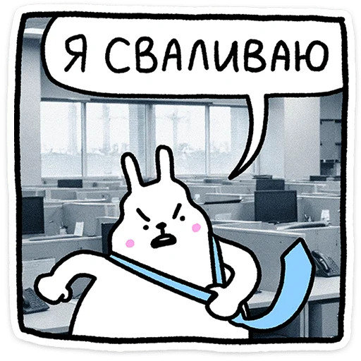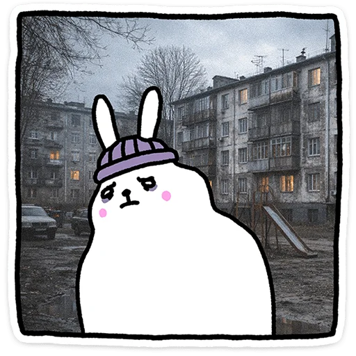 Белый кролик с большими ушами и невозмутимой мордочкой - главный герой этого стикерпака. Его юмор строится на абсурдных ситуациях: он спокойно стоит в биде, игнорирует всё вокруг и делает странные вещи с видом человека, которому всё равно. Кролик не злится и не радуется - он просто существует в этом мире по своим правилам. Иногда он дерзит, иногда философствует, иногда просто грызёт морковку посреди хаоса. Этот персонаж идеально передаёт настроение человека, которому надоело объяснять очевидное. Стикеры подойдут тем, кто общается коротко, метко и без лишних слов.