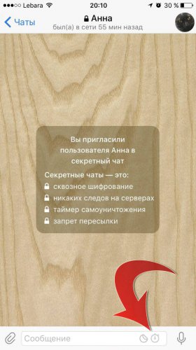 - Самоуничтожение - в настройках секретного чата можно поставить таймер самоуничтожения сообщений от секунды до недели, по истечению заданного времени сообщение будет удалено не только с вашего устройства, но и у собеседника, восстановить его будет уже не возможно.