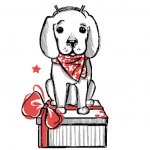 Прикольный пёсель в праздничном наборе стикеров посвященных Новому году и Рождеству